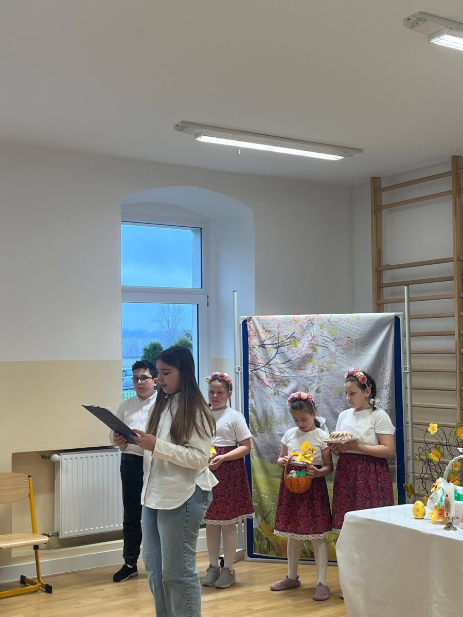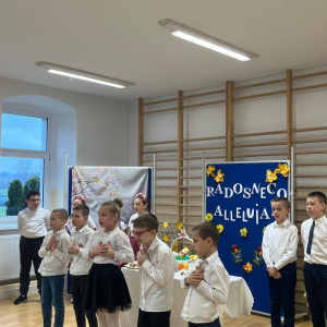 We wtorek w naszej szkole odbył się uroczysty apel wielkanocny, przygotowany przez uczniów. Wydarzenie zostało wzbogacone o piękne, starannie wykonane dekoracje, które wprowadziły wszystkich uczestników w świąteczny nastrój.