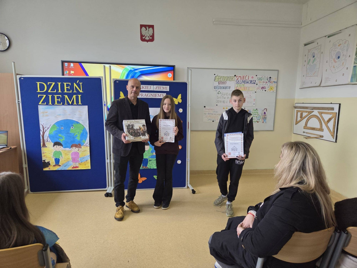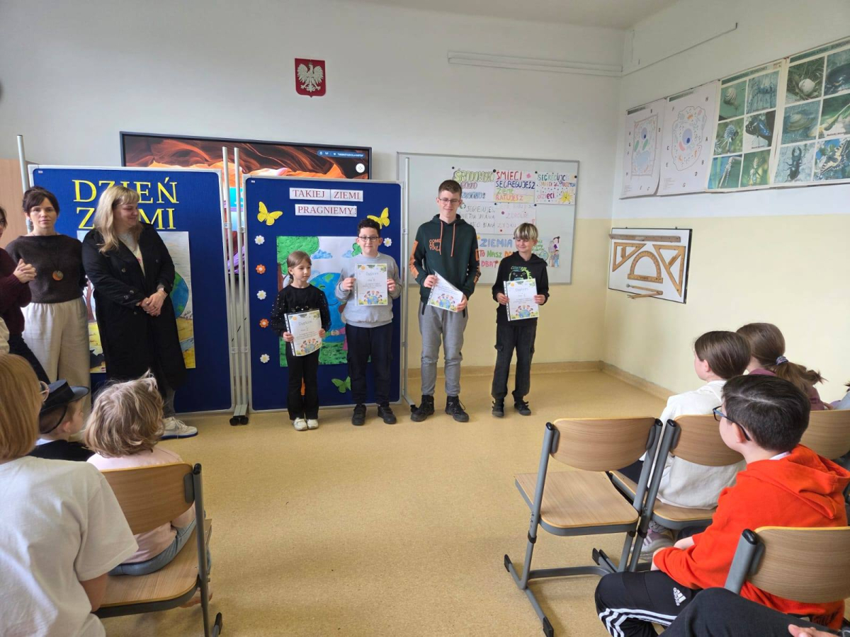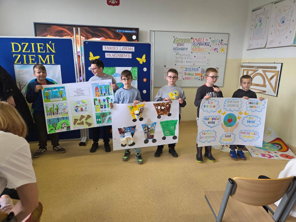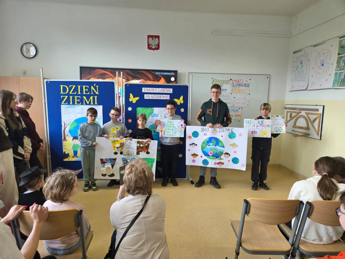 21 kwietnia nasza społeczność szkolna świętowała Dzień Ziemi. Wydarzenie rozpoczęły konkursy kreatywne - plastyczny oraz na najciekawsze hasło ekologiczne. Po urokliwym występie przedszkolaków, uczniowie zamienili się w projektantów mody recyklingowej i rywalizowali w budowaniu piramidy z kubków na czas. Emocje przeniosły się następnie na boisko, gdzie odbyły się międzyklasowe zawody sportowe. Finałem pełnego wrażeń dnia był wspólny grill na podwórku szkolnym.