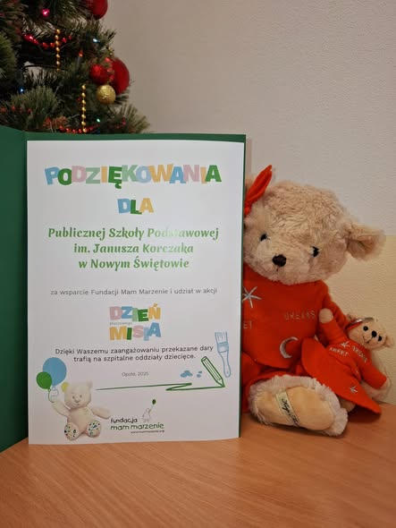 Z przyjemnością informujemy, że Fundacja Mam Marzenie przesłała do naszej szkoły serdeczne podziękowanie za udział w akcji „Dzień Pluszowego Misia”. Doceniono zaangażowanie oraz ogromne serca całej społeczności szkolnej, które przyczyniły się do sukcesu tej pięknej inicjatywy.