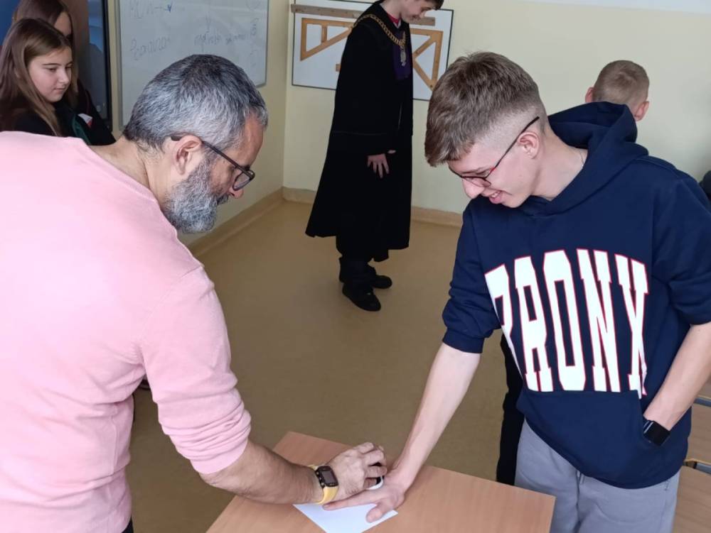 Przy okazji Pan Sędzia poruszył problematykę bezpieczeństwa dzieci i młodzieży w przestrzeni cyfrowej, ze szczególnym uwzględnieniem zjawisk hejtu, przemocy rówieśniczej oraz prawnych konsekwencji wynikających z publikowania treści obraźliwych, rozpowszechniania szkodliwych materiałów wizualnych (m.in. tzw. memów).