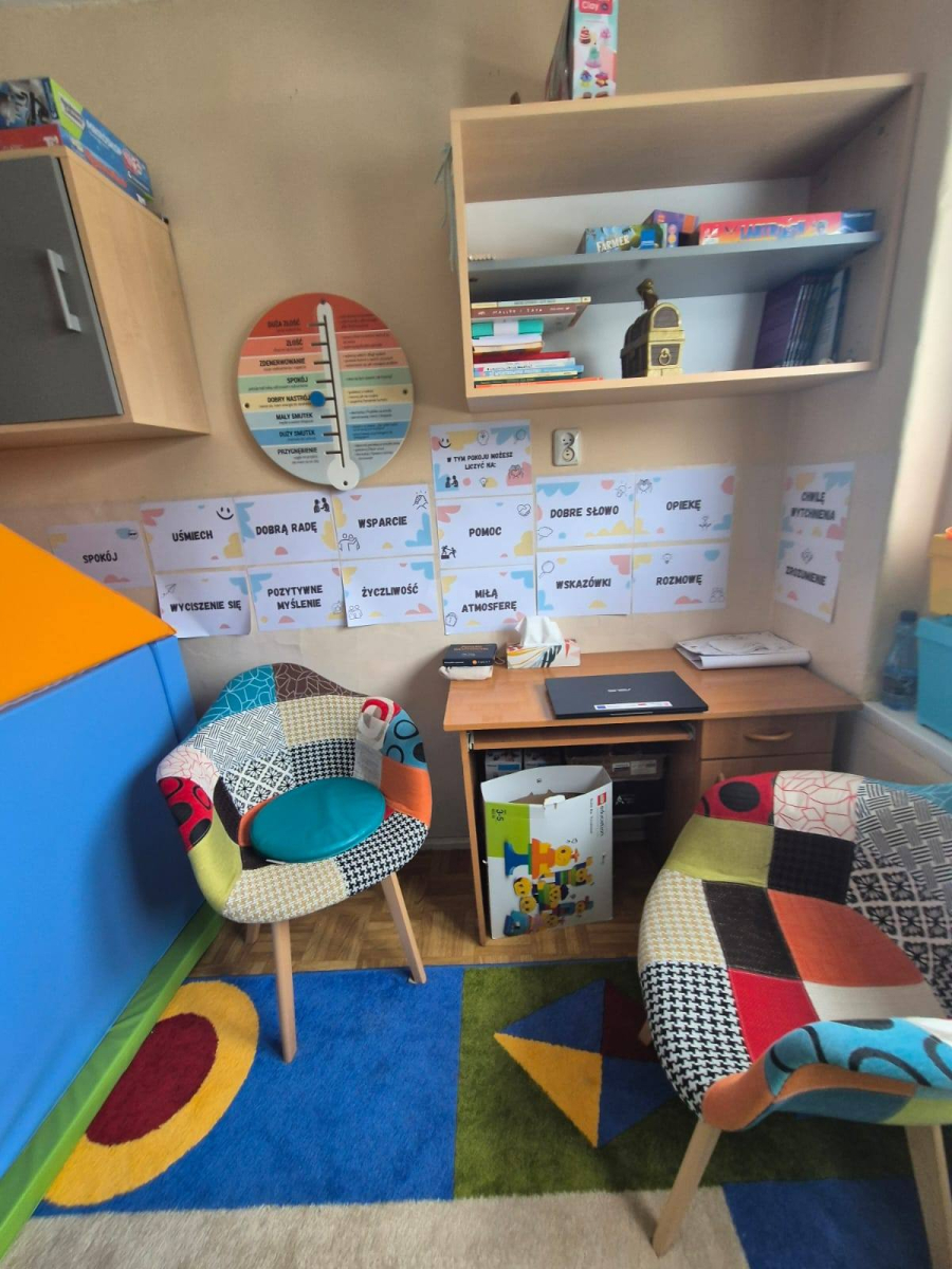 Jeśli masz gorszy dzień, coś Cię martwi albo po prostu potrzebujesz chwili spokoju- możesz tam porozmawiać z pedagogiem lub psychologiem.